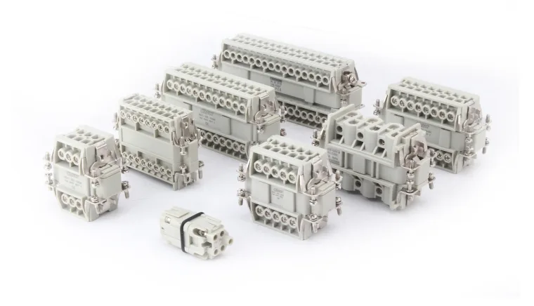 اندر ہیوی ڈیوٹی کنیکٹر یا ٹرمینلز داخل کریں اکثر انفرادی اجزاء میل شیل کے اندر ماڈیولر انسولیٹر ہاؤسنگ میں داخل کیے جاتے ہیں۔ اس سے کسی ایک کنیکٹر میں طاقت ، سگنل ، ڈیٹا ، اور یہاں تک کہ سماکشیی یا فائبر آپٹک رابطوں کو اختلاط کرنے کی اپنی مرضی کے مطابق تشکیلات کی اجازت ملتی ہے۔ داخل کرنے والے ٹرمینل بلاک اور انفرادی رابطے مخصوص شکلوں اور پوزیشنوں کے ساتھ تیار کیے گئے ہیں تاکہ صحیح ملاوٹ کو یقینی بنایا جاسکے اور غلط پلگنگ کو روکا جاسکے۔
